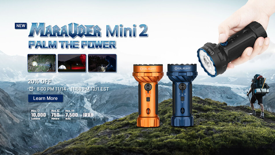 The Marauder Mini 2: Power in the Palm of Your Hand. The Marauder Mini 2 packs monster performance (10,000 lumens floodlight, 750m spotlight throw). It offers 5 versatile lighting modes and up to 5 months of runtime in side light moonlight mode, powered by a 7,500mAh battery. The intuitive triple-control system lets you switch modes and brightness quickly and seamlessly—palm the power with confidence.
