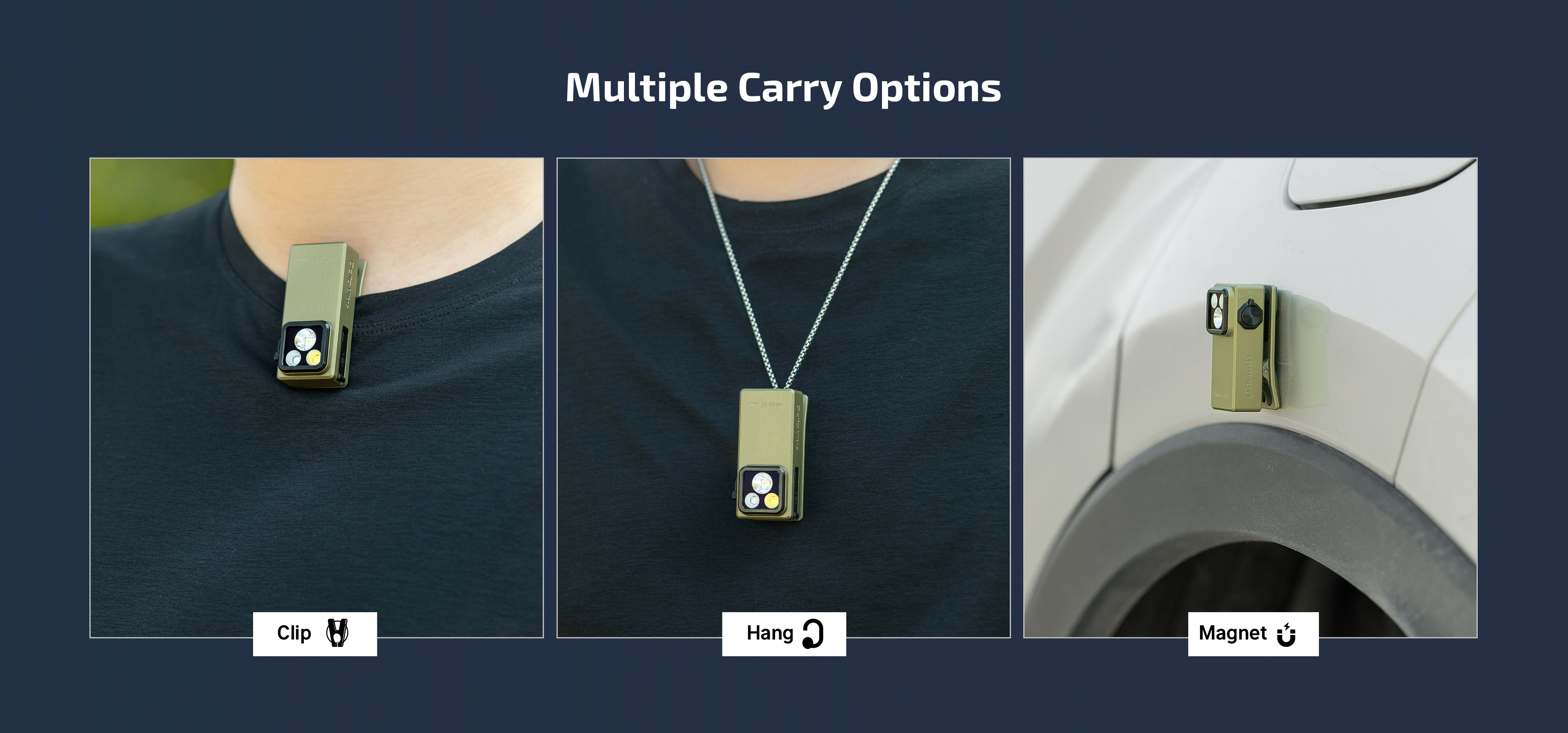 2. Multiple carry options: clip, adhesive mount, lanyard, or wearable - position light exactly