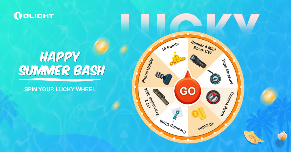 The Lucky Wheel promotion is a great way for you to celebrate Summer Bash and score some exciting prizes and discounts on your favorite products. Spin a virtual wheel of fortune to win various exciting prizes! These prizes may include popular Olight products such as Seeker 4 Mini Black CW, i3T 2 Friendship 2024, Tape Measure, Canada Patch, Phone Holder, and others. Let's go and spin the lucky wheel now>>>
