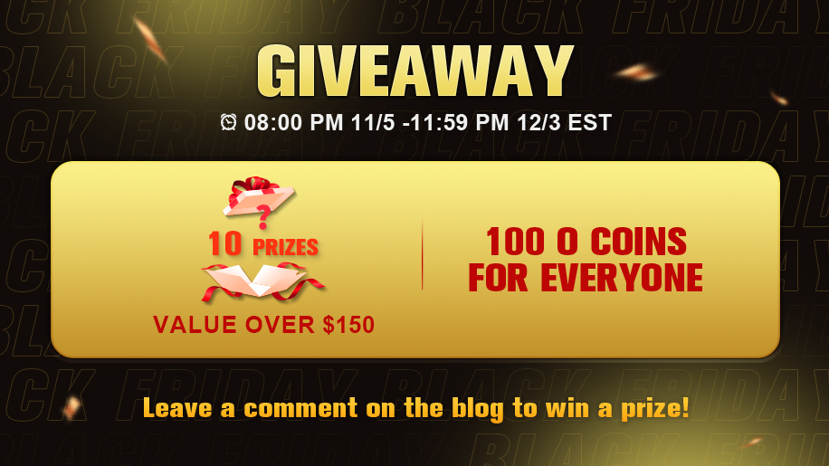 During Black Friday, you can get double points&O-coins on all purchases ($1=20 points=20 O-coins)! Dealer($1=4 points=4 O-coins)