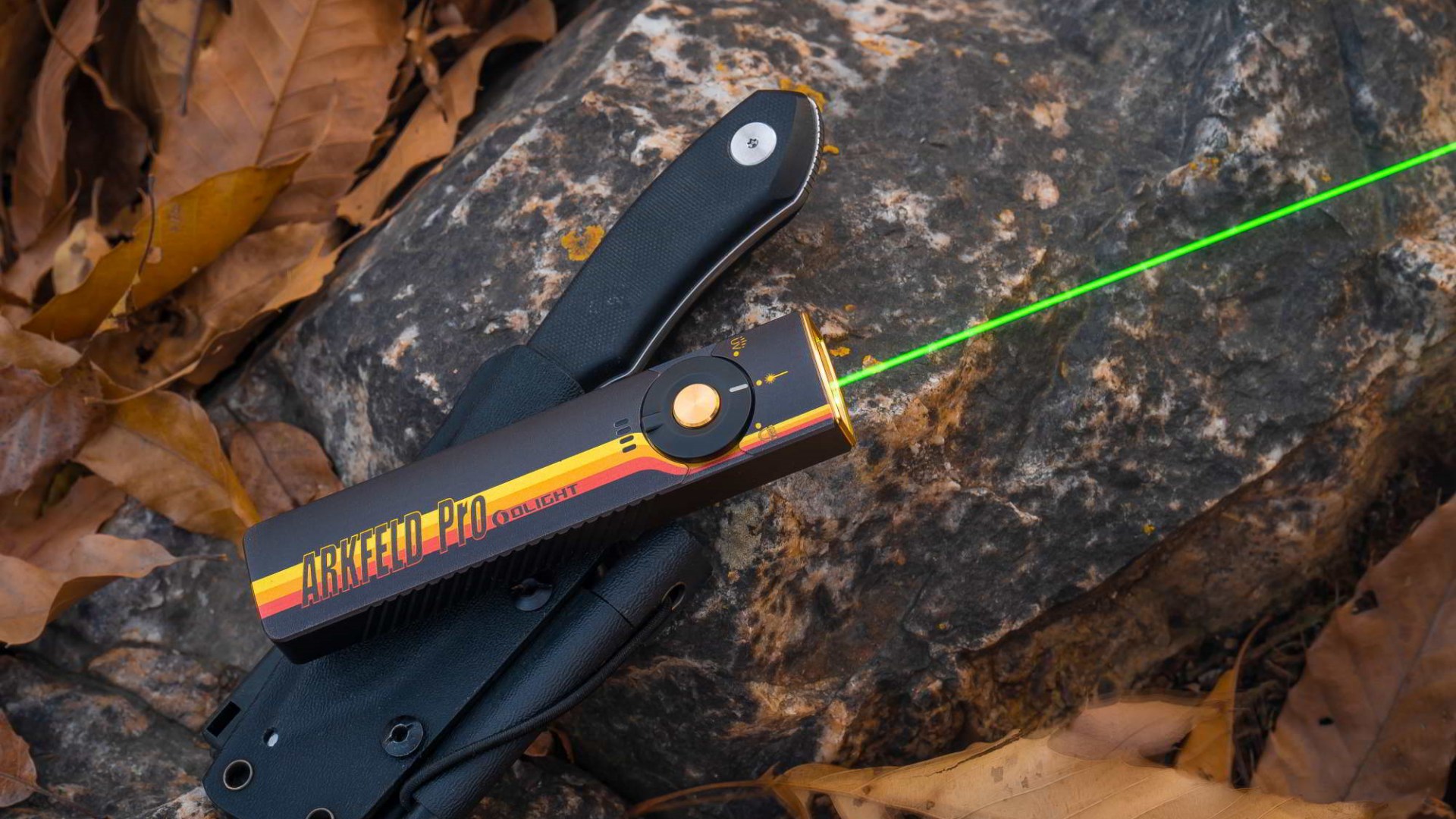 Olight Canada 2023&2024 best seller - TOP1 Arkfeld Pro, Olight's FIRST rechargeable flashlight that combines 1,300lm white light, 900mW UV light, and Class 3R green laser, offering versatility for a wide range of applications.