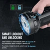● Double Button Cooperative Power: A simple toggle switch to select either spotlight or floodlight; an intuitive rotary knob switch to turn on the light and circle through 7 output levels