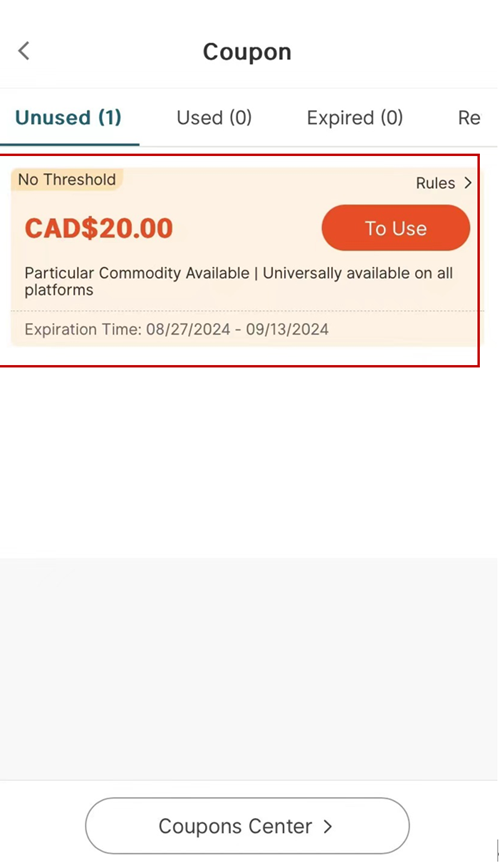 2. Coupons: check them in "My Account" and click "coupon."