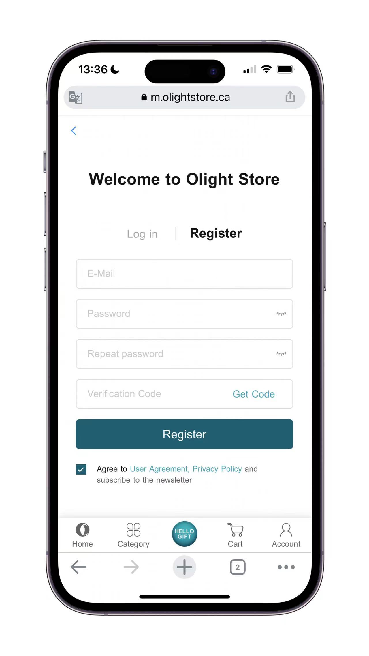 There are three ways to register on the Olight CA official website: